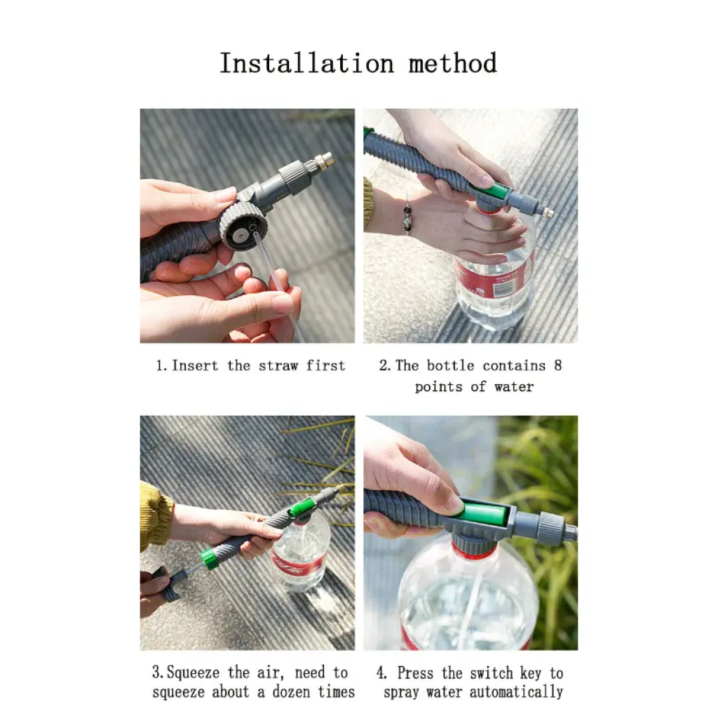 BASINÇLI YIKAMA SULAMA TABANCASI“Gücünüze Güç Katın: Basınçlı Su ile Kusursuz Temizlik ve Sulama!”Çiçeklerinizi sulamak veya sıvı vitaminle beslemek için bu tabancayı kullanabilirsiniz. Basınçlı püskürtme özelliği sayesinde ulaşılması zor alanları kolaylıkla temizler. Taşları, dış ahşap zeminleri, dış mekan mobilyalarını, duvarları ve botları basınçlı su ile etkili bir şekilde yıkayabilirsiniz. Günlük kullanım için ideal olan bu tabanca, litrelik içecek pet şişelerine takılarak uyumlu bir şekilde kullanılabilir. Böylece her an elinizin altında pratik bir temizlik ve sulama çözümü bulundurabilirsiniz.