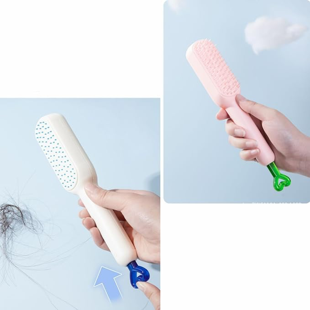 KENDİNİ TEMİZLEYEN SAÇ TARAĞI"Saçınıza Hak Ettiği Bakımı Verin - Her Tarakta Spa Hissi!"Kendi Kendini Temizleyen Anti-statik Masaj Tarağı:- Masaj Özelliği: Bu tarak, kafa derisine masaj yapabilen ve saçı nazikçe tedavi edebilen küçük yuvarlak parçacıklara sahiptir. Bu özellik sayesinde rahatlatıcı bir spa benzeri deneyim sunar.Ergonomik Tasarım:- Kullanım Kolaylığı: Basit ve şık bir görünüme sahip olan tarak, buzlu bir dokuya sahiptir ve ergonomik tutamağı ile rahat ve keyifli bir tarama deneyimi sağlar.Kullanımı Kolay:- Hızlı Temizlik: Geri çekilebilir döner kaldırma mekanizması sayesinde tarak, 1 saniyede saçları temizler. Sadece kolu döndürerek hava yastığının tüm saç ve döküntüleri serbest bırakmasını sağlayabilirsiniz. Bu özellik kepek ve kuru saç derisini tedavi ederek kafa derisi sağlığını ve saç büyümesini destekler.Tüm Saç Tipleri için Uygun:- Çok Yönlülük:Saça nazikçe nüfuz eder, en düğümlü düğümleri kolayca çözer ve tüm saç tiplerine uygundur. Düz saçlar, kıvırcık saçlar, ince saçlar, kalın saçlar, zarar görmüş saçlar, peruk ve uzatılmış saçlar için ideal bir taraktır.Kullanım Alanları- Günlük Kullanım: Her türlü saç tipi ve ihtiyacı için günlük kullanıma uygun.- Saç Bakımı ve Şekillendirme: Hem saç bakımında hem de saç şekillendirmede rahatlıkla kullanılabilir.- Masaj ve Rahatlama:Kafa derisine masaj yaparak rahatlama ve konfor sağlar.Paket İçeriği1 adet kendini temizleyen saç tarağı