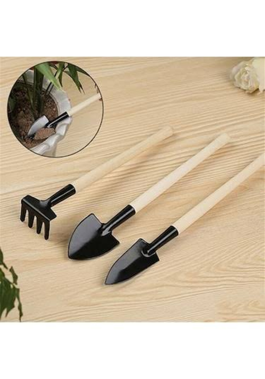 MİNİ AHŞAP HOBİ BAHÇE SETİ 3 PARÇAMini ahşap bahçe hobi seti, bahçe tutkunlarına yönelik pratik bir üründür ve içeriğinde şu öğeleri barındırır:Tırmık: Toprağı düzenlemek, havalandırmak ve çeşitli bitki işlemlerinde kullanılan küçük dişli tırmık, bahçe topraklarını hazırlamak için idealdir.Kürek: Bitki dikimi, toprak hareketi ve benzeri işlemler için kullanılan kürek, bahçe çalışmalarında kullanıcılara pratik bir yardım sağlar.İnce Kürek, küçük alanlarda detaylı işler için uygun olan ince kürek, bitki köklerini ayırmak, çiçekler arasında düzenleme yapmak gibi ince işlerde kullanılır.Bu mini bahçe hobi seti, taşınabilir ve kullanımı kolaydır. Ahşap malzeme, doğal ve estetik bir görünüm sunarken aynı zamanda dayanıklılığı da artırır. Bahçe meraklıları için küçük ölçekli projelerde kullanılabilecek bu set, keyifli bir bahçe deneyimi sunmayı amaçlar.Paket İçeriği1 adet mini ahşap hobi bahçe seti 3 parça
